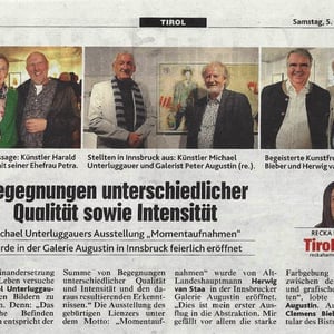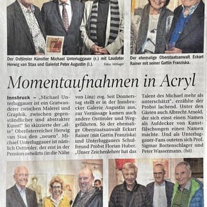 Den Galeristen Peter und Susanne Augustin mit der kompetenten Mitarbeiterin Lara, sowie allen, die zum Gelingen der Vernissage beigetragen haben, sage ich Dank! Dank im besonderen Maße Altlandeshauptmann DDr. Herwig van Staa für die persönlichen und wertschätzenden Worte zu meiner künstlerischen Tätigkeit.